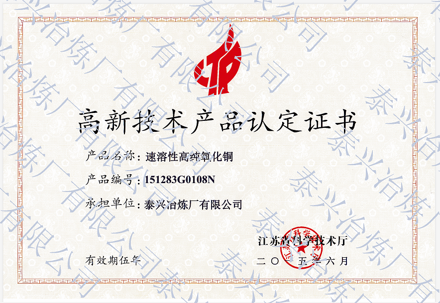 • 我國高端的氧化亞銅生產(chǎn)基地