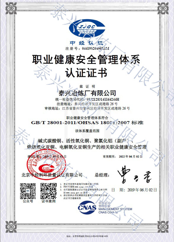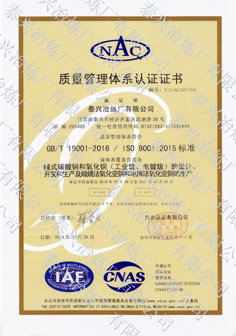 泰興冶煉廠有限公司(原泰興冶煉廠),始建于20世紀(jì)70年代初,現(xiàn)位于江蘇省泰興經(jīng)濟(jì)開發(fā)區(qū)。歷經(jīng)40年的創(chuàng)新驅(qū)動(dòng)、穩(wěn)健發(fā)展,已成長為一家專業(yè)生產(chǎn)堿式碳酸銅、高純電鍍氧化銅、氧化亞銅、氧化銅、無水硫酸銅、海綿銅粉及副產(chǎn)品聚氯化鋁(凈水劑)等系列無機(jī)鹽產(chǎn)品及處置不含氨的氯化銅蝕刻液(HW22)15000噸/年的“國家高新技術(shù)企業(yè)”和地方性骨干企業(yè)。公司總占地面積3.7萬平方米,建筑面積4萬平方米,注冊(cè)資本2088萬元,固定資產(chǎn)1.2億元,年產(chǎn)值約7億元。